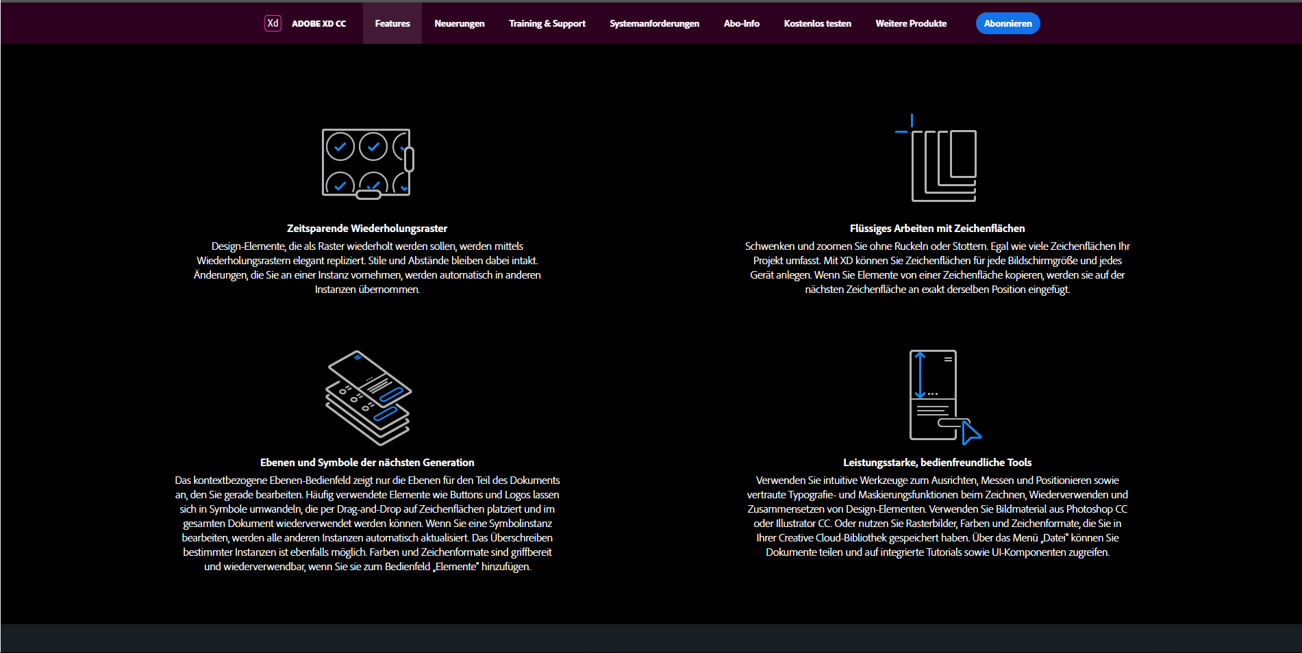 Mit Adobe XD kann man schnell von der Idee einer Website oder App hin zum Prototyp gelangen. Die Prototypen überzeugen dabei nicht nur visuell, sondern sind auch für verschiedenste Geräte optimiert. Das Programm liefert umfassende Tools für moderne UX/UI-Designer, wie beispielsweise eine flexible Zeichenfläche oder zeitsparende Wiederholungsraster. Mit einem Klick kann man vom statischen Design zum interaktiven Prototypen übergehen und diesen anschließend auch für sein Team freigeben, um sich Feedback einzuholen.