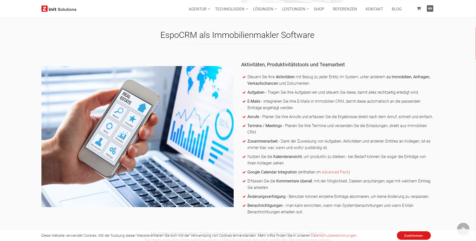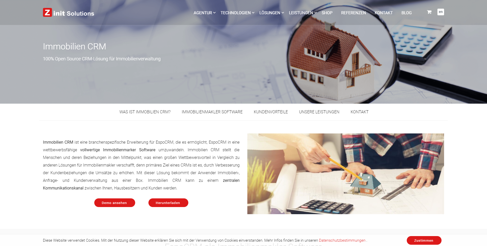 Immobilien CRM ist eine branchenspezifische Erweiterung für EspoCRM. Diese Lösung ermöglicht es, EspoCRM als eine vollwertige Immobilienmarker Software mit einer hohen Wettbewerbsfähigkeit zu nutzen. Einer der wichtigsten Vorteile von Immobilien CRM verglichen mit anderen ähnlichen Lösungen ist, dass es im System die Menschen und deren Beziehungen im Mittelpunkt stehen, was einen wesentlichen Mehrwert für Immobilienmakler schafft. Immobilien CRM bietet viele Funktionen direkt aus der Box an (z.B. Immobilien-, Anfrage- und Kundenverwaltung).